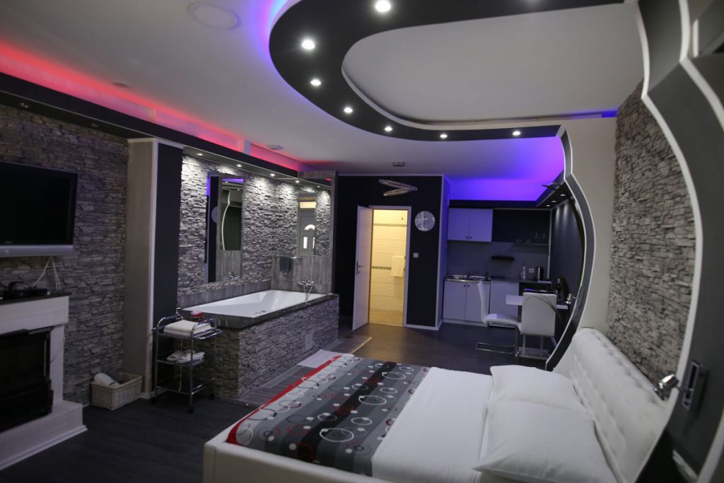 1 room soundproof size: 50 m2 air condition double bed heating table with chairs refrigerator bathroom EVO TV fireplace free Wi-Fi stove multi-colored lighting on the ceiling with remote control